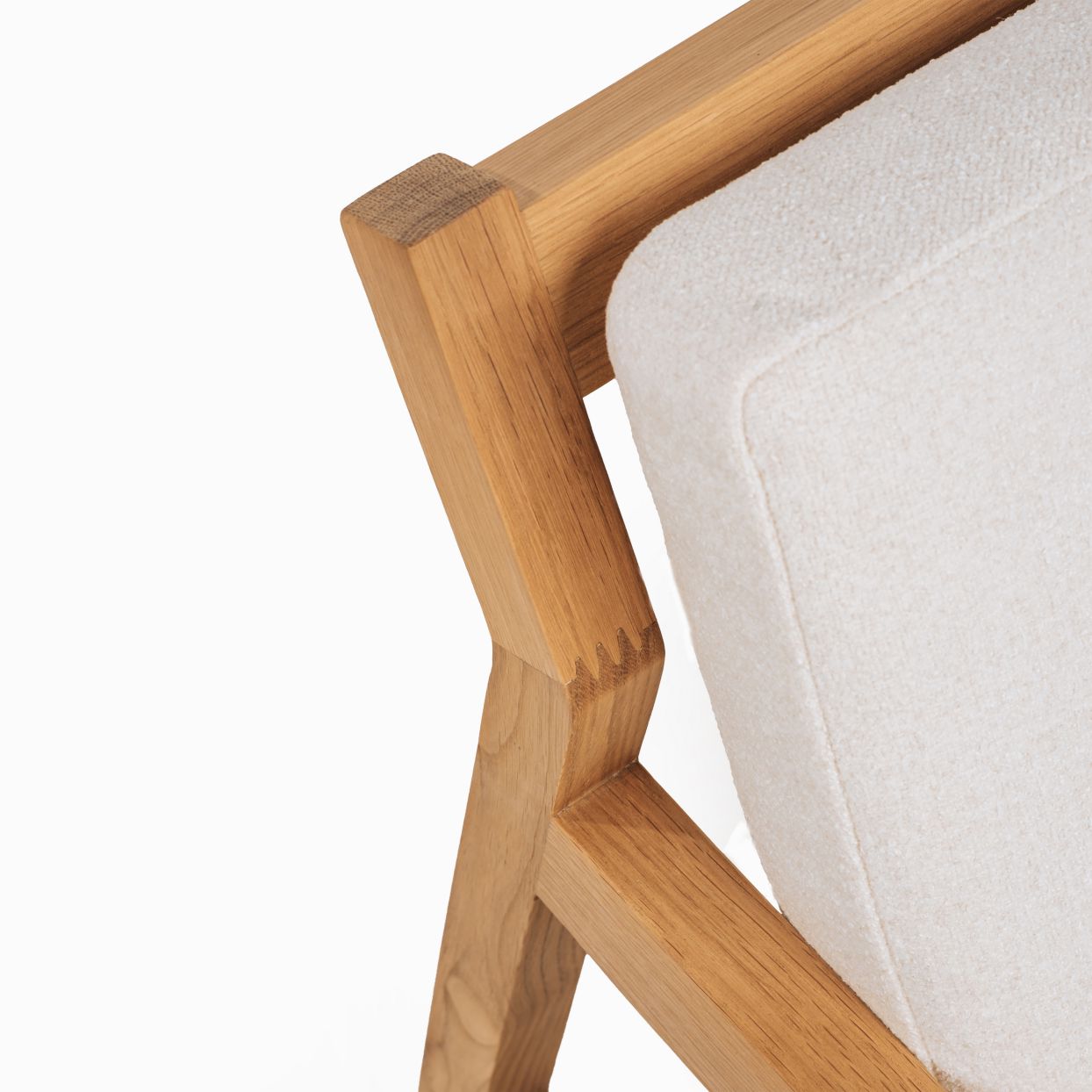 This stunning piece showcases a solid oak frame with elegantly sculpted armrests and a luxuriously soft cushion. Its refined silhouette seamlessly merges natural materials with contemporary aesthetics, blending timeless elegance with modern lines.