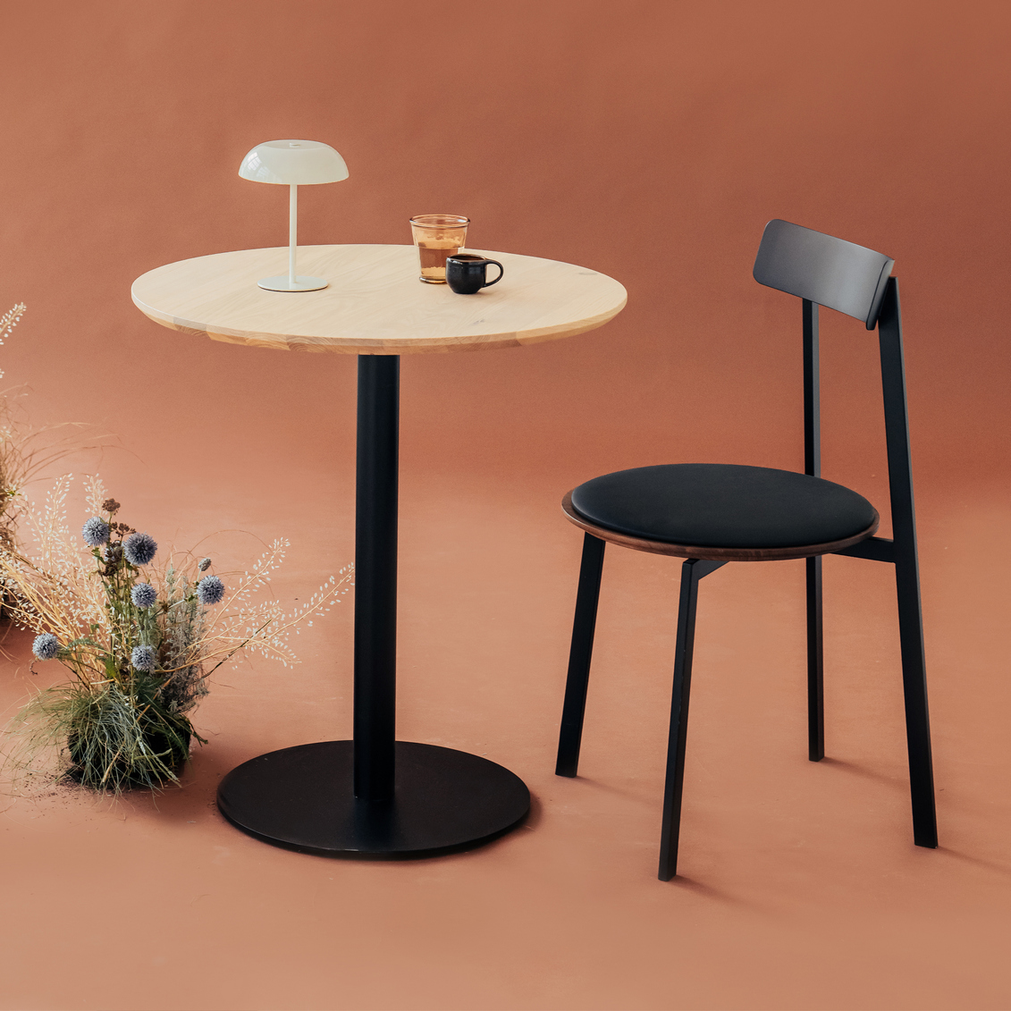 Discover the perfect blend of precision and lasting elegance with this metal chair. The black metal frame provides a strong, sleek foundation, while its perfectly embedded solid walnut seat adds warmth and sophistication.