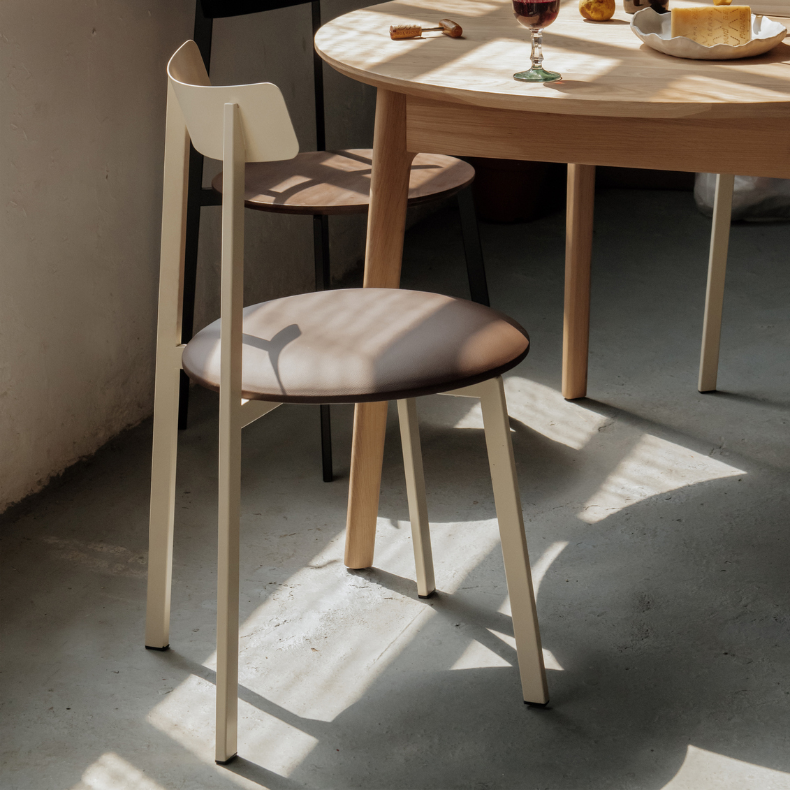 The cream metal beautifully highlights its discrete contours, creating perfect harmony between form and function. Ideal for any table setting, this chair invites you to sit back and enjoy the harmonious elegance it brings to your home.