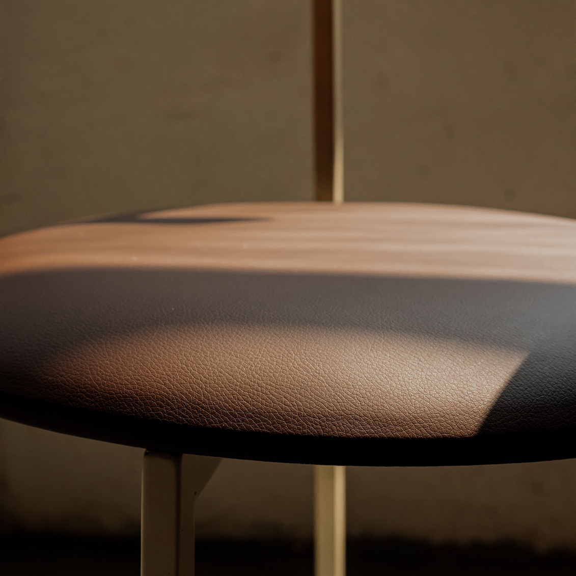 Distinctive blend of contrast and color suitable both for universal and artistically furnished interiors. This dining chair features a cream metal frame that subtly imbues interior light with elegance, while its soft brown cushion adds a touch of warmth and sophistication. Designed to enhance any dining space or as a standalone piece, this chair offers a unique combination of modern aesthetics and practical elegance.