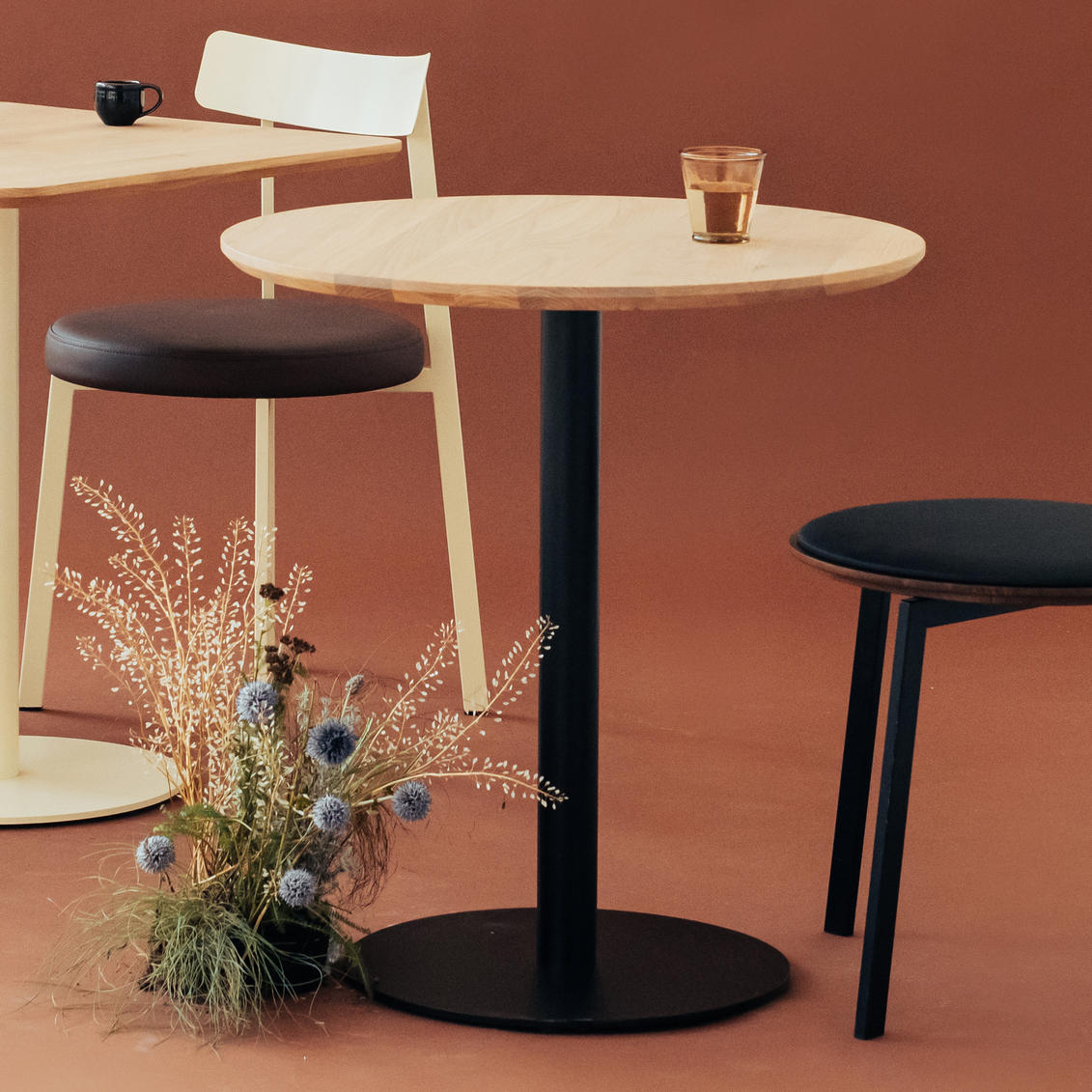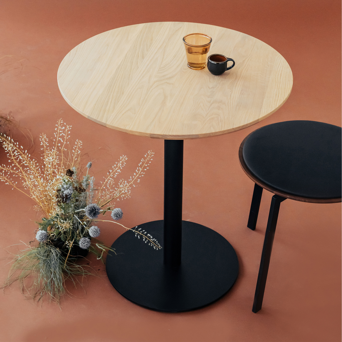 The table’s minimalist design effortlessly complements both cozy cafes and chic home interiors, adding a touch of sophistication without overwhelming the space. Customize the solid oak tabletop to suit your taste and bring refined beauty into your everyday moments.
