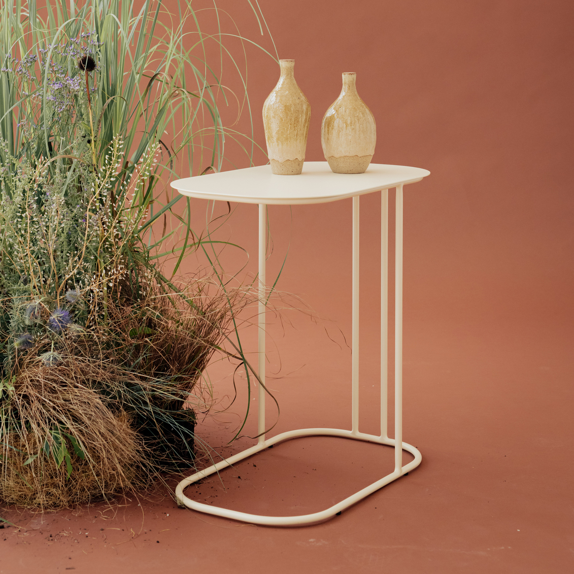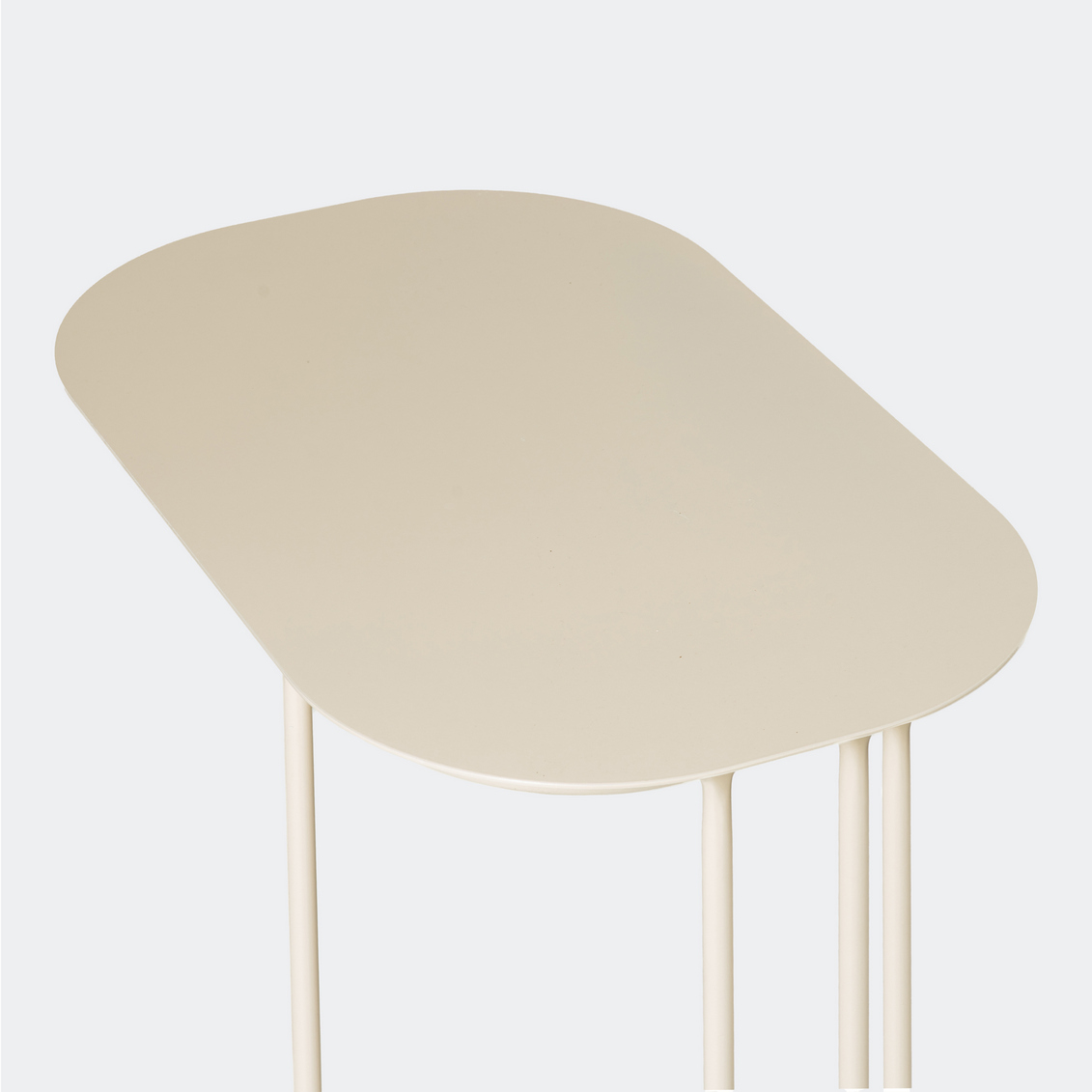 A light touch of subtle elegance to your living space. This compact, thoughtfully designed piece features a sleek oval base and an oval metal tabletop, both crafted from solid-colored metal.